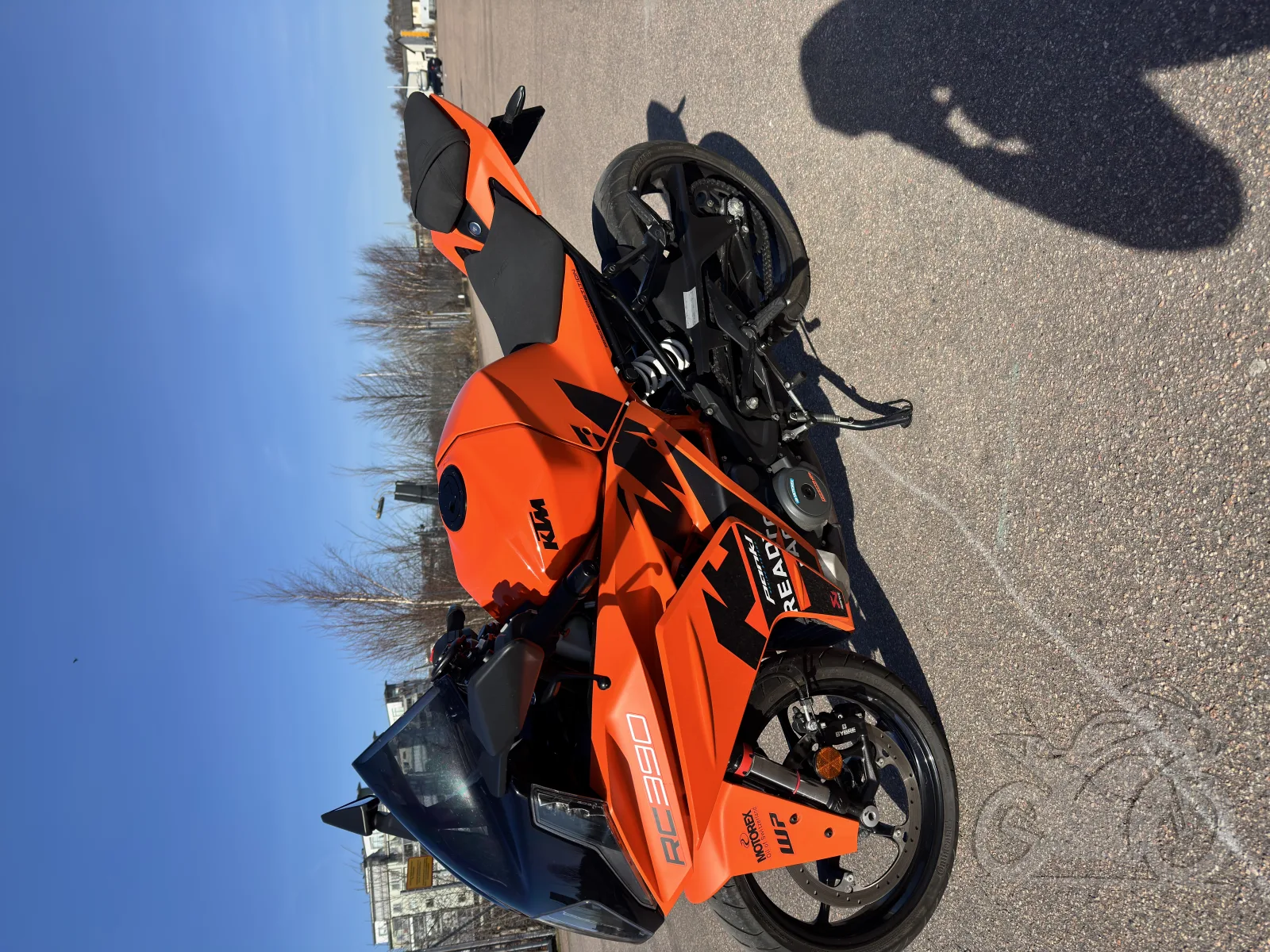 Detta är GP-versionen. Vilket ger motorcykeln en unik och mycket snygg färgkombo! Ska påminna om KTM:s banracinghojar